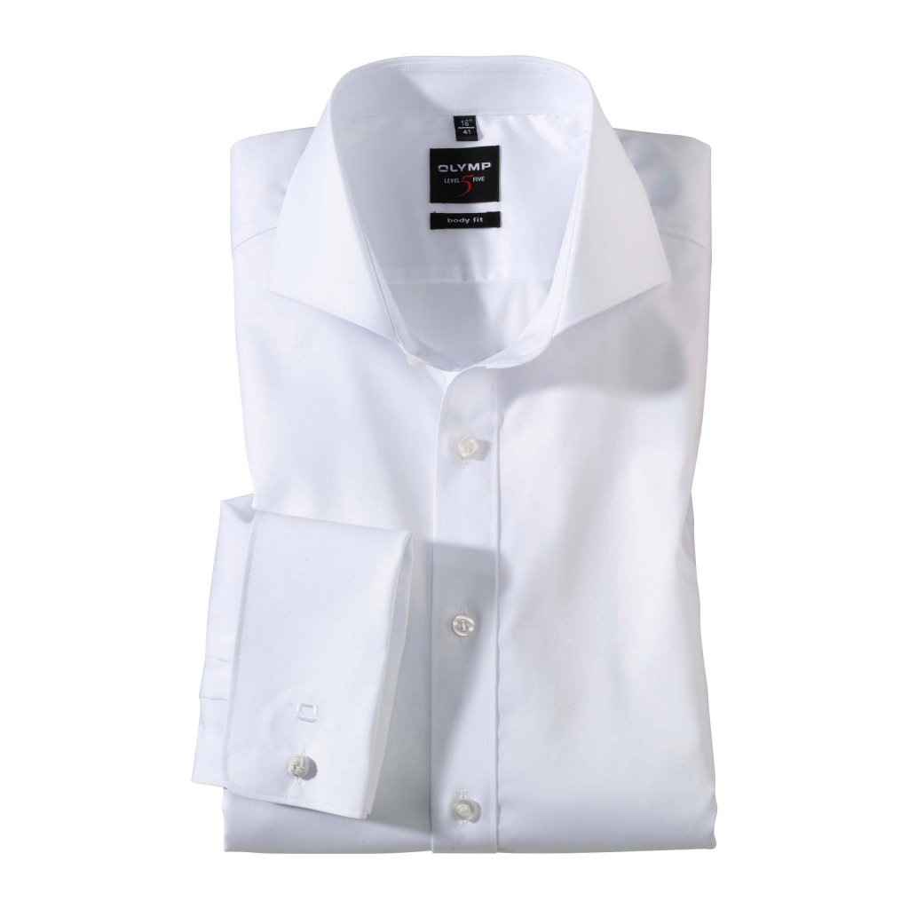 Biela spoločenská košeľa s manžetou OLYMP body fit predĺžený rukáv
