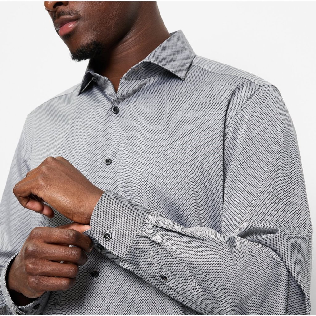Pánska antracitová košeľa so štruktúrou OLYMP body fit predĺžený rukáv
