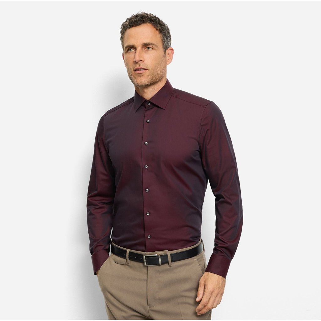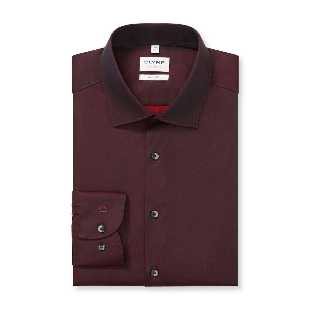 Pánska bavlnená bordová košeľa OLYMP body fit