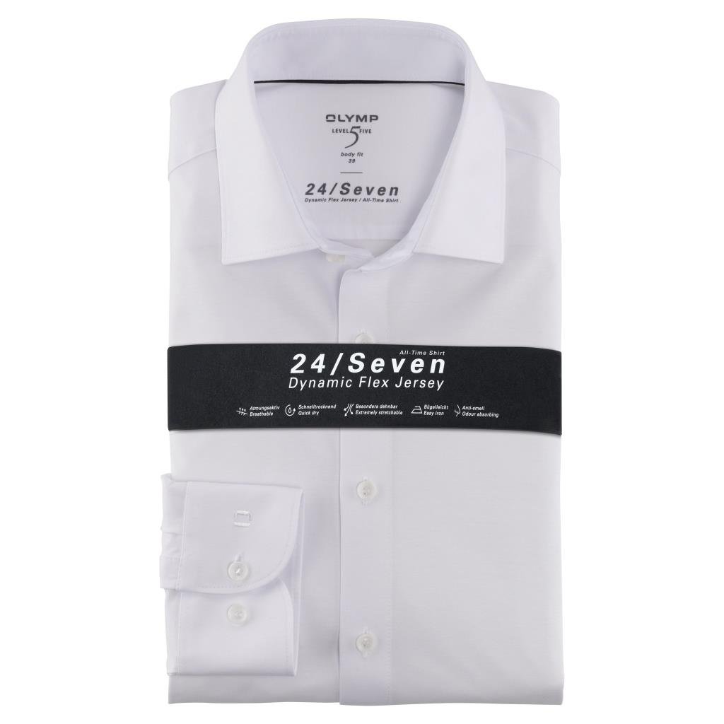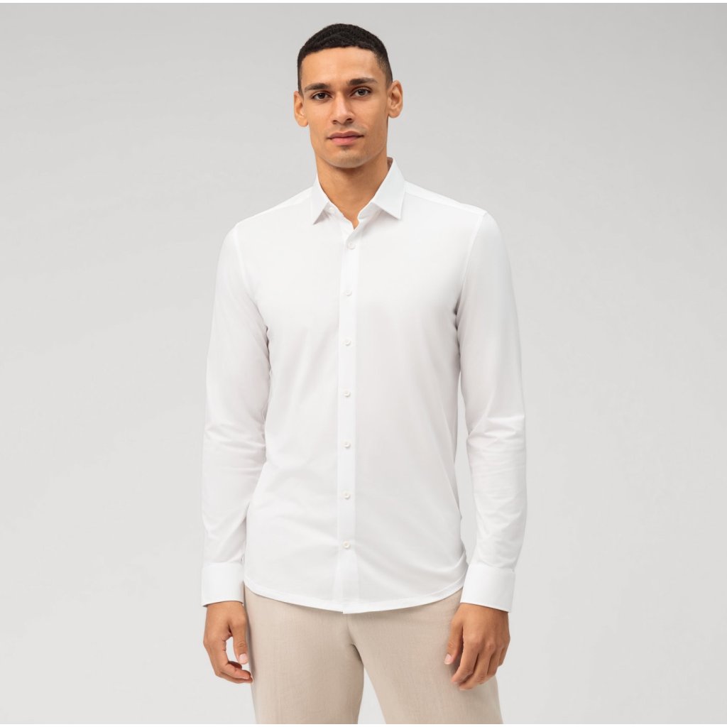 Pánska biela elastická flex jersey košeľa OLYMP body fit predĺžený rukáv