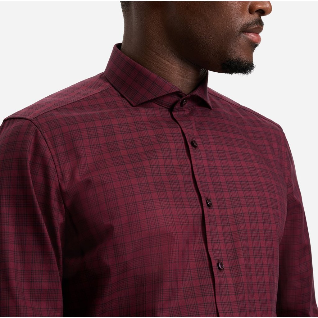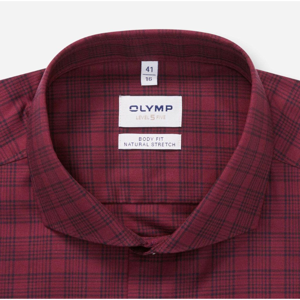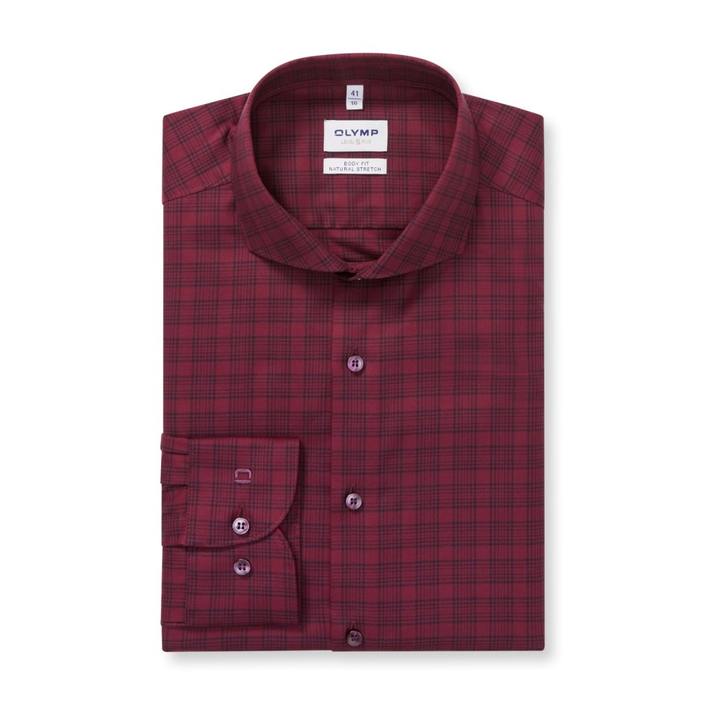 Pánska bordová karovaná casual košeľa OLYMP body fit