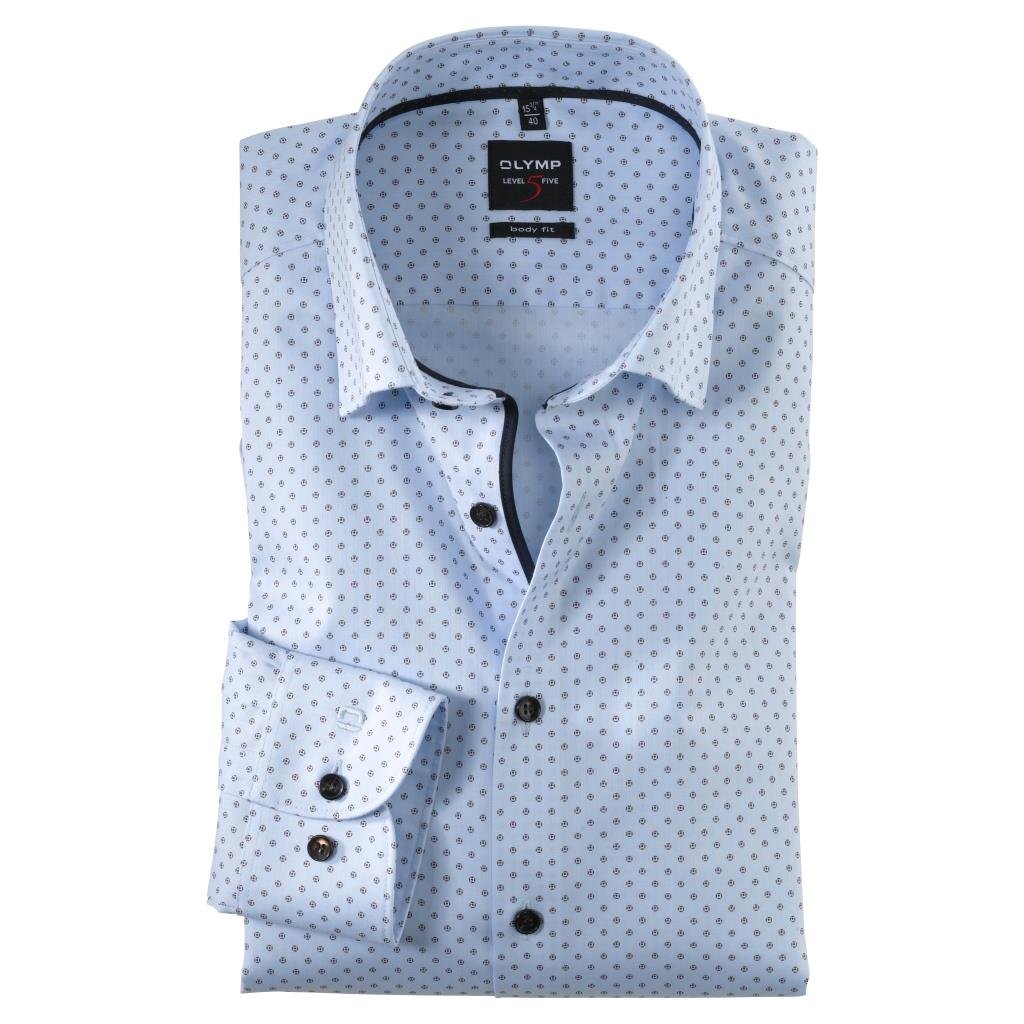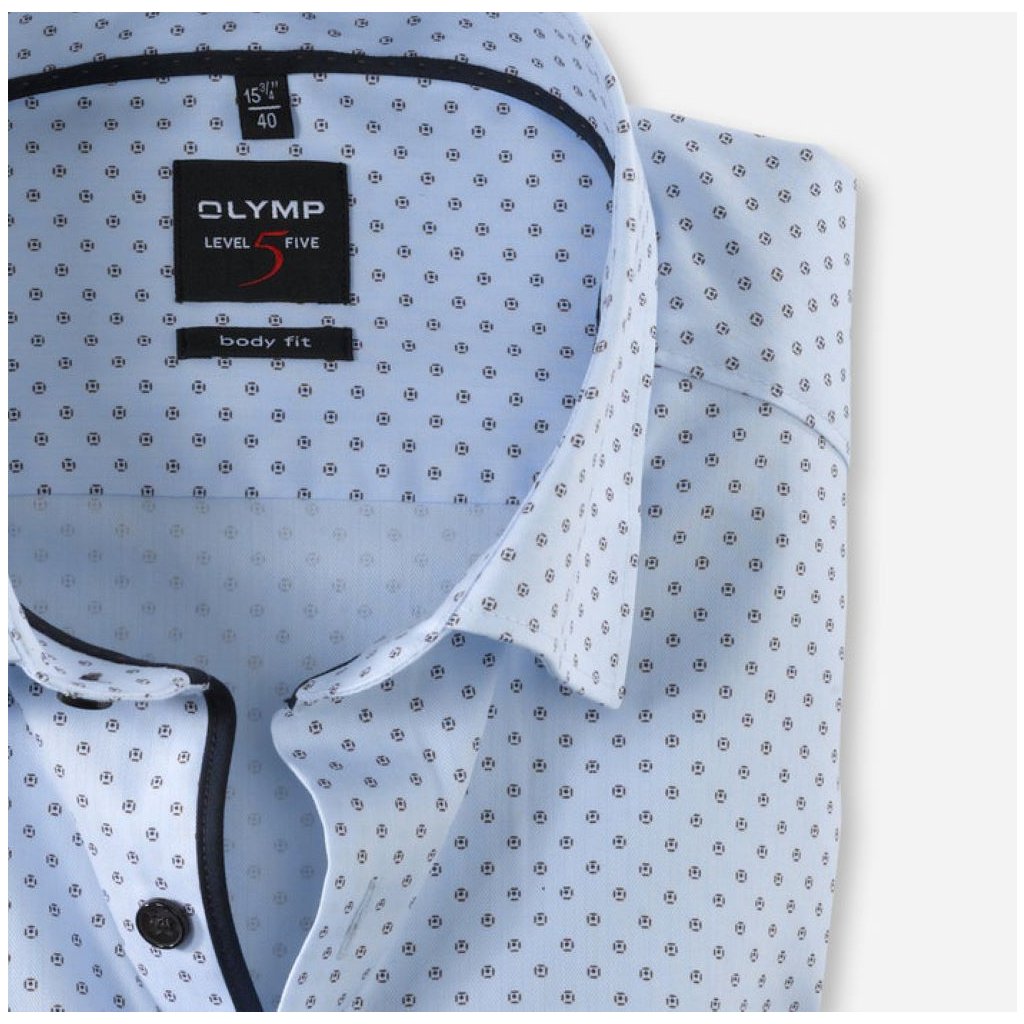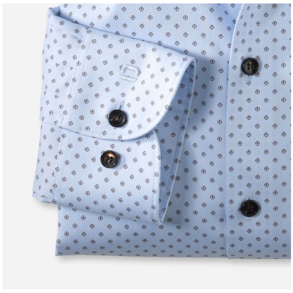 Pánska elegantná modrá košeľa s jemným vzorom OLYMP, body fit, predĺžený rukáv