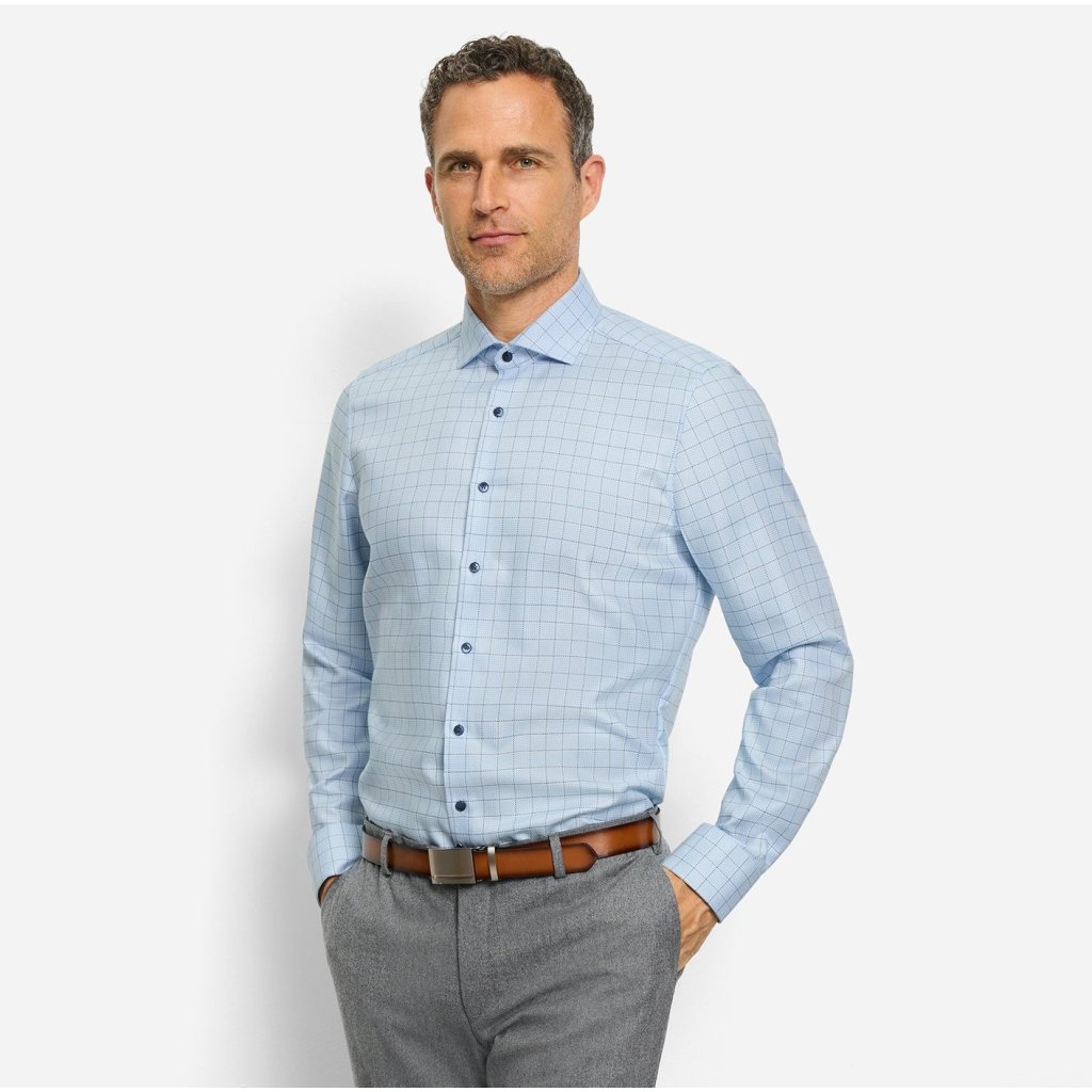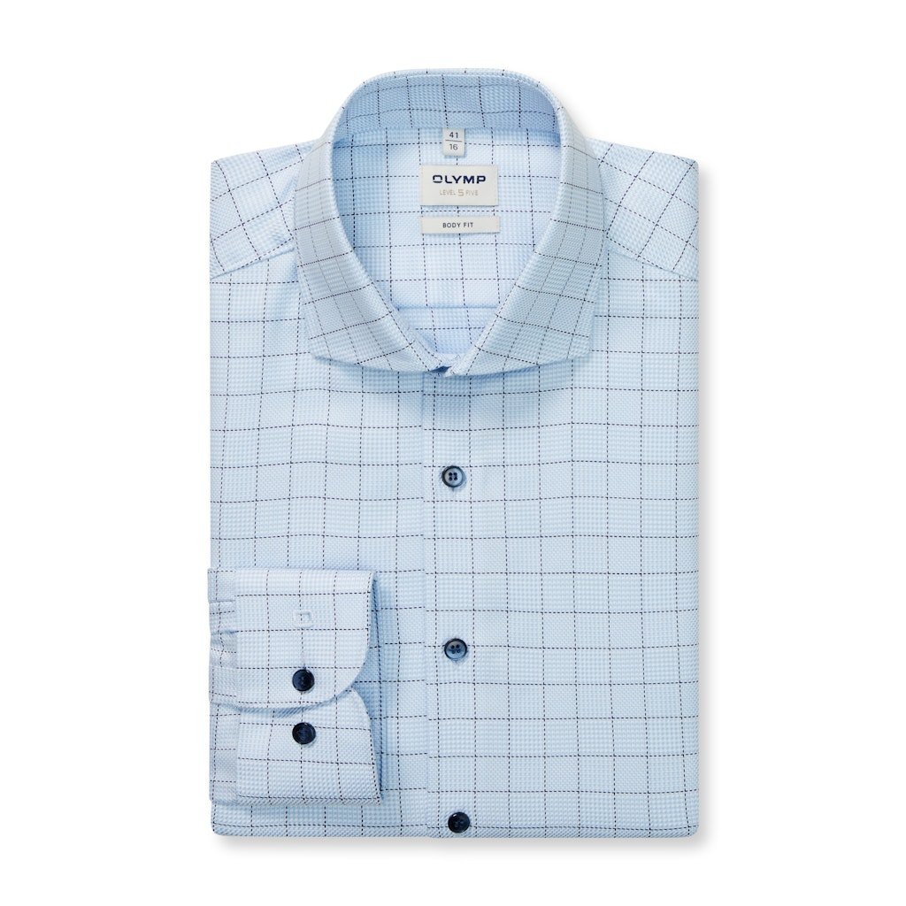 Pánska luxusná svetlomodrá károvaná košeľa OLYMP body fit