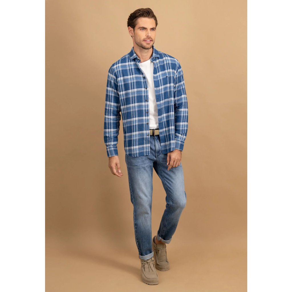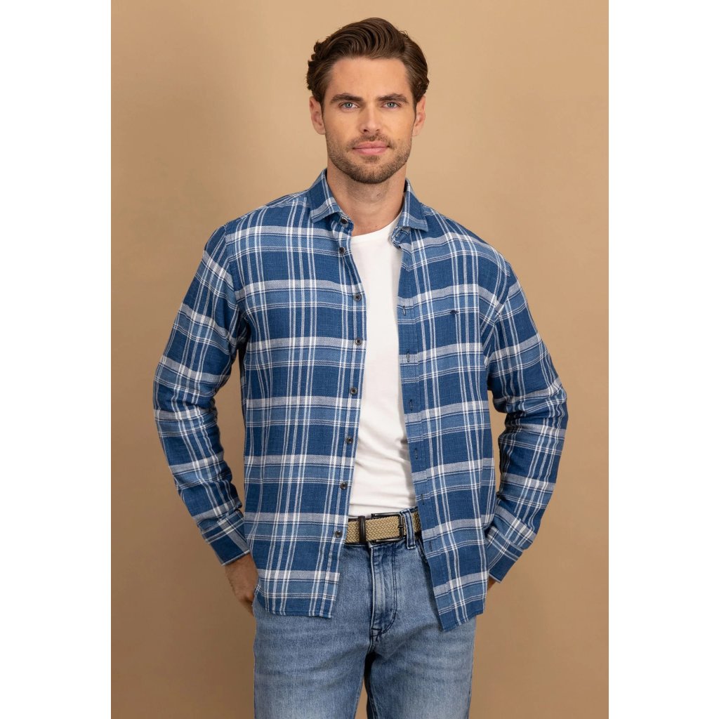 Pánska modrá károvaná košeľa FYNCH-HATTON
