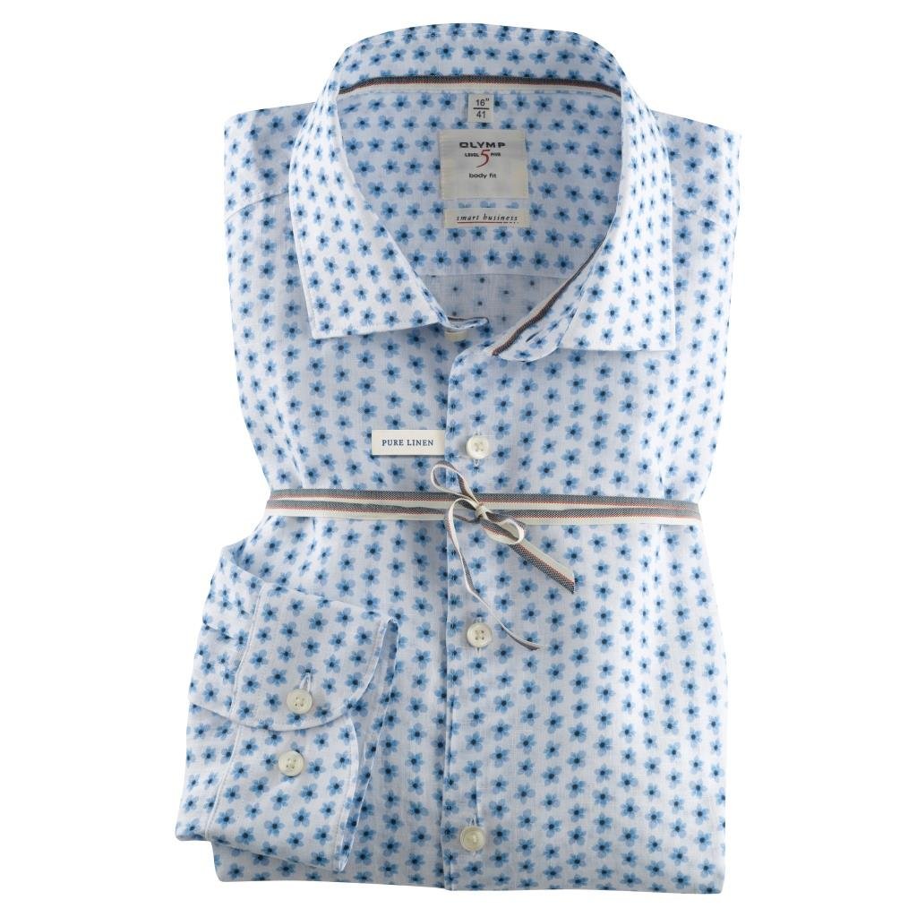 Pánska modrá ľanová smart košeľa OLYMP body fit