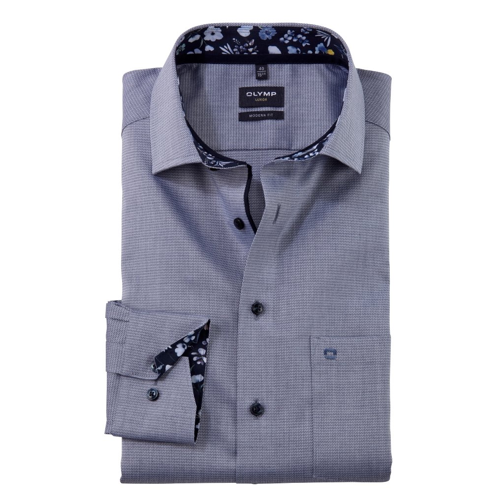 Pánska modrá non-iron bavlnená košeľa OLYMP modern fit, predĺžený rukáv
