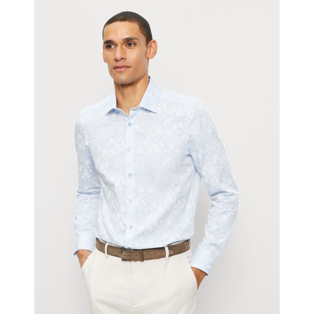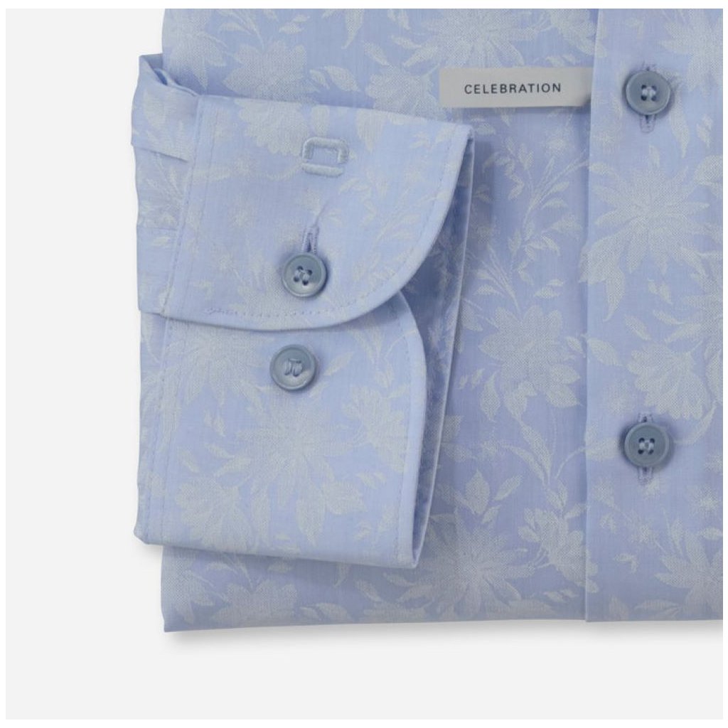 Pánska modrá slávnostná košeľa s kvetovanou štruktúrou OLYMP body fit