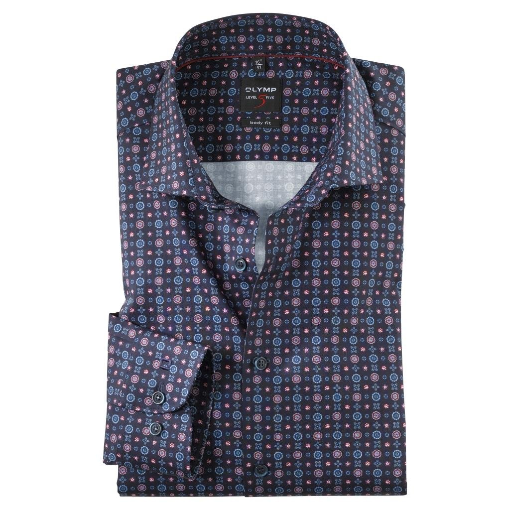 Pánska modrá vzorovaná košeľa OLYMP body fit