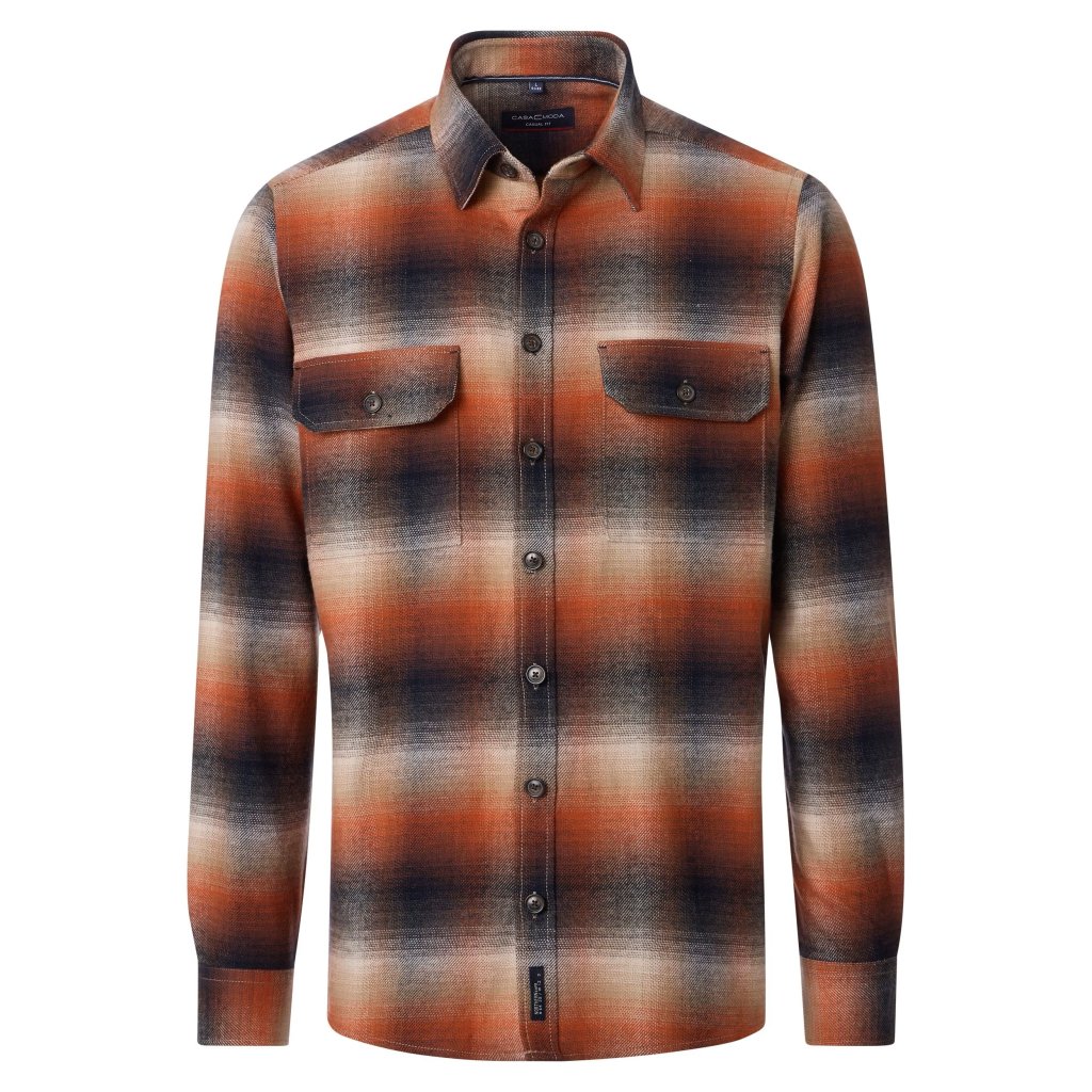 Pánska oranžová károvaná flanelová košeľa CASA MODA