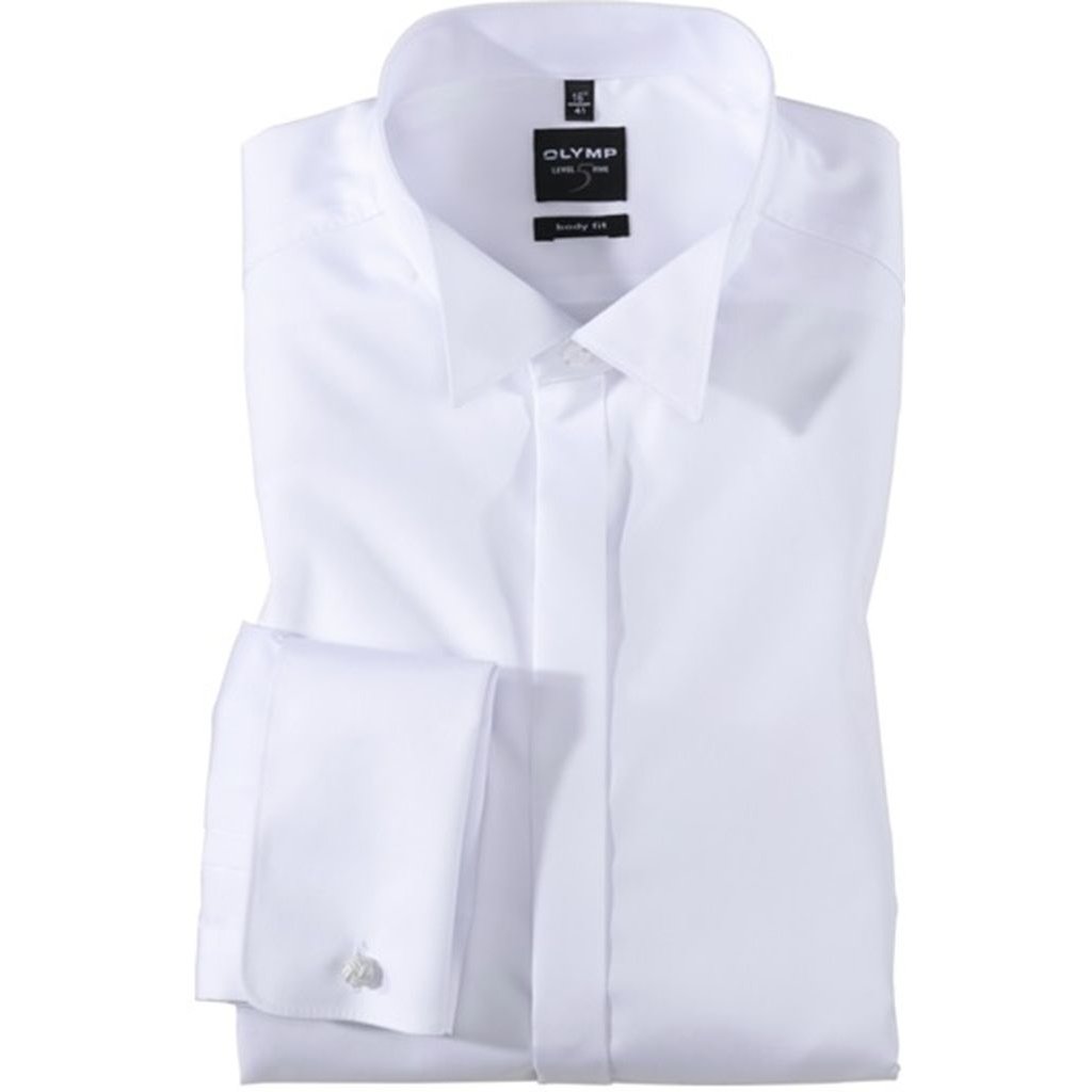 Smokingová biela košeľa soirée OLYMP body fit predĺžený rukáv