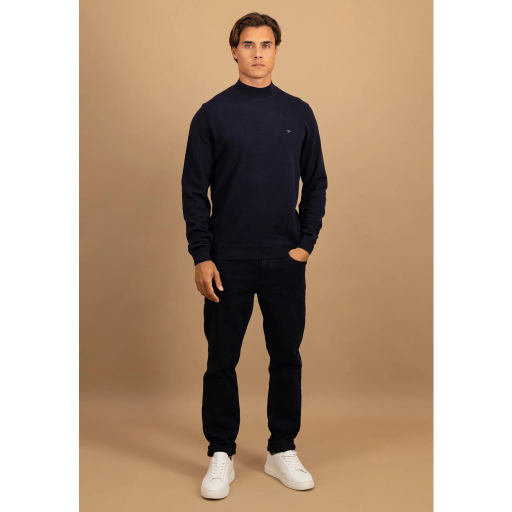 Pánsky modrý bavlnený polorolák s kašmírom FYNCH-HATTON