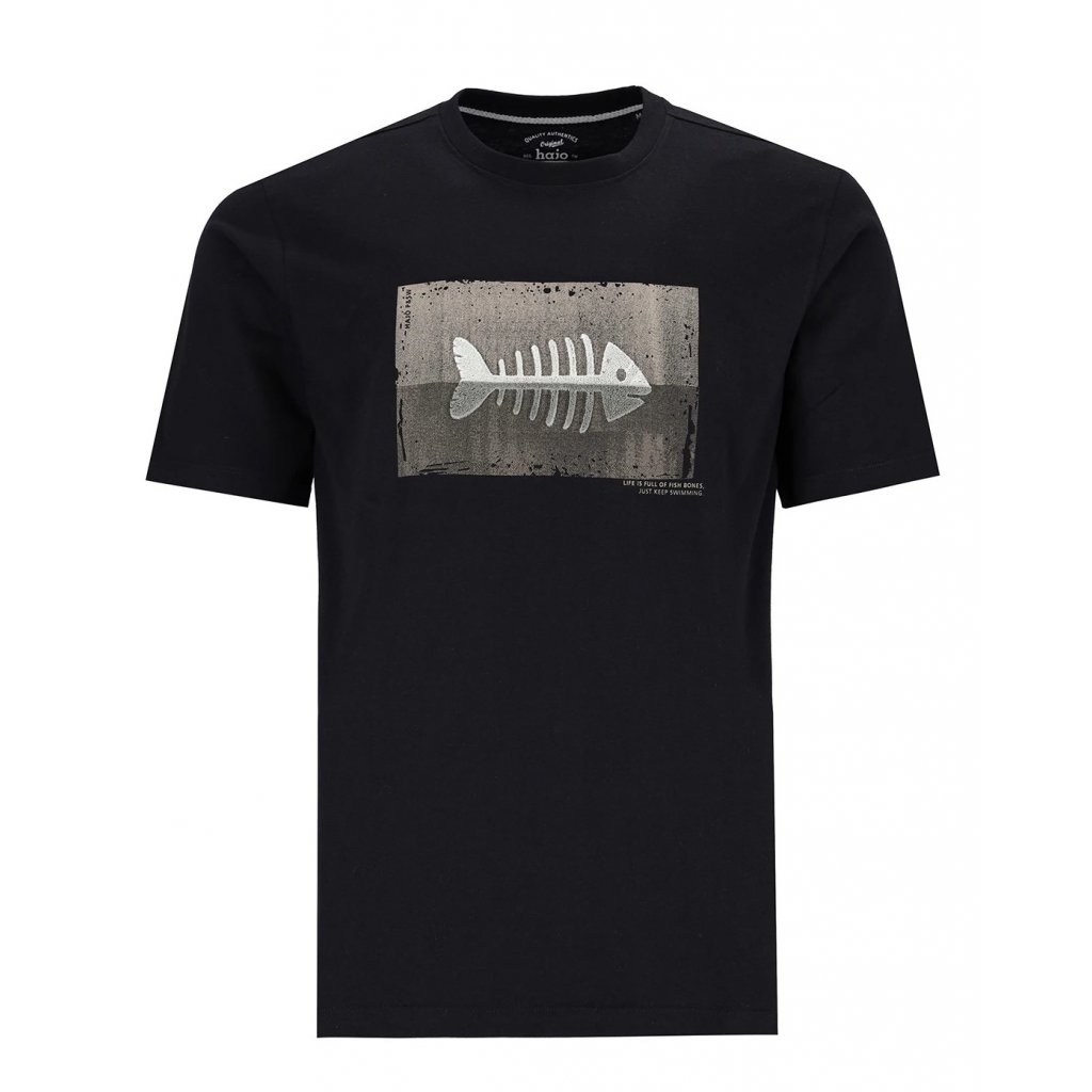 Pánske čierne bavlnené tričko 3D fish HAJO